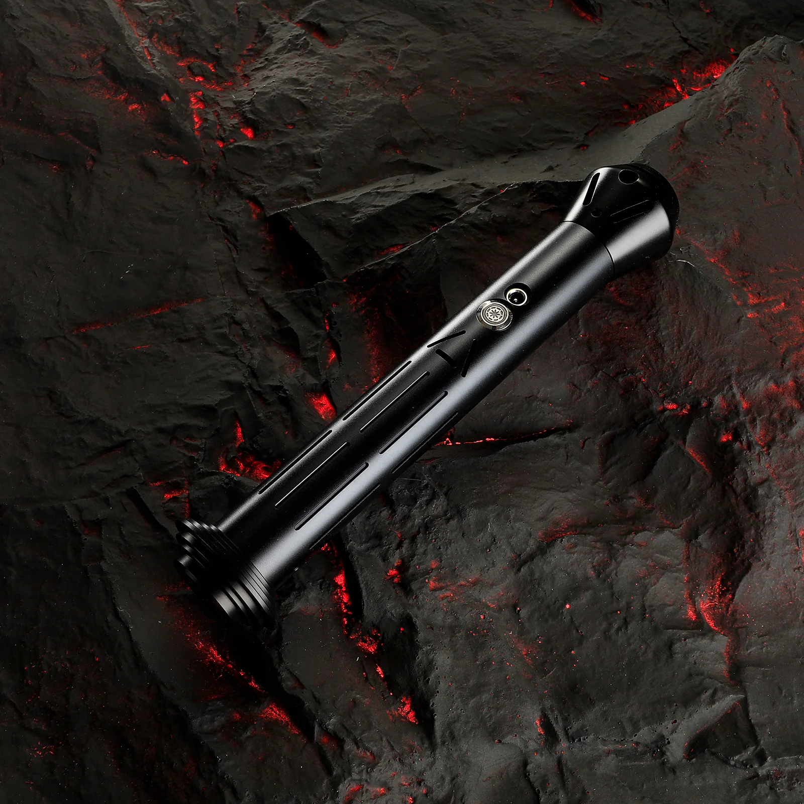 The signature pyramid of Crimson Dawn is machined directly into the hilt and emitter, letting all know your membership status in the syndicate. Vertical grip grooves on the lower body provide excellent grip and the dished pommel ensures the saber will not leave your hand unwantedly.